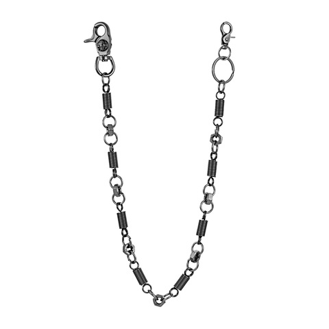 Wholesale Skull Clad Coil Spring Wallet Chain Edgy Black/Silver Biker Pant Clip Punk Rock Jewelry Trouser Chain